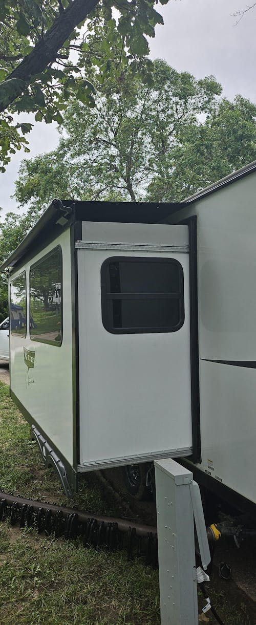 We finally had an opportunity to take the trailer out camping with the new slide out toppers. We have a big storm move through. The slide out toppers held well in the rain and wind. Very little movement in the wind. The longer slide out toppers held well did hold water due to the amount of rain that fell. We brought the slide in about 1/2 way and the water dumped quickly off of the slide out topper. The roof of the slide out was dry. After dumping the water, the slide out topper went back to being tight.