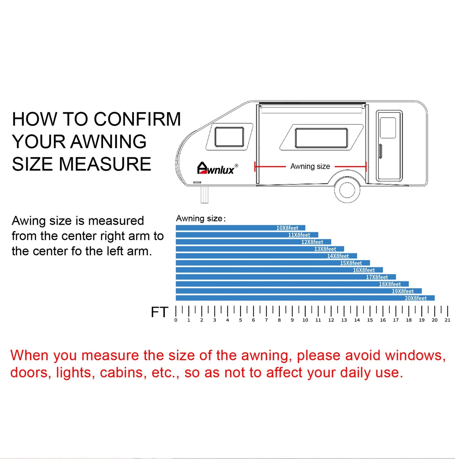 2. If you have a new trailer, when you measure the awning, please avoid windows, doors, lights, and cabins.