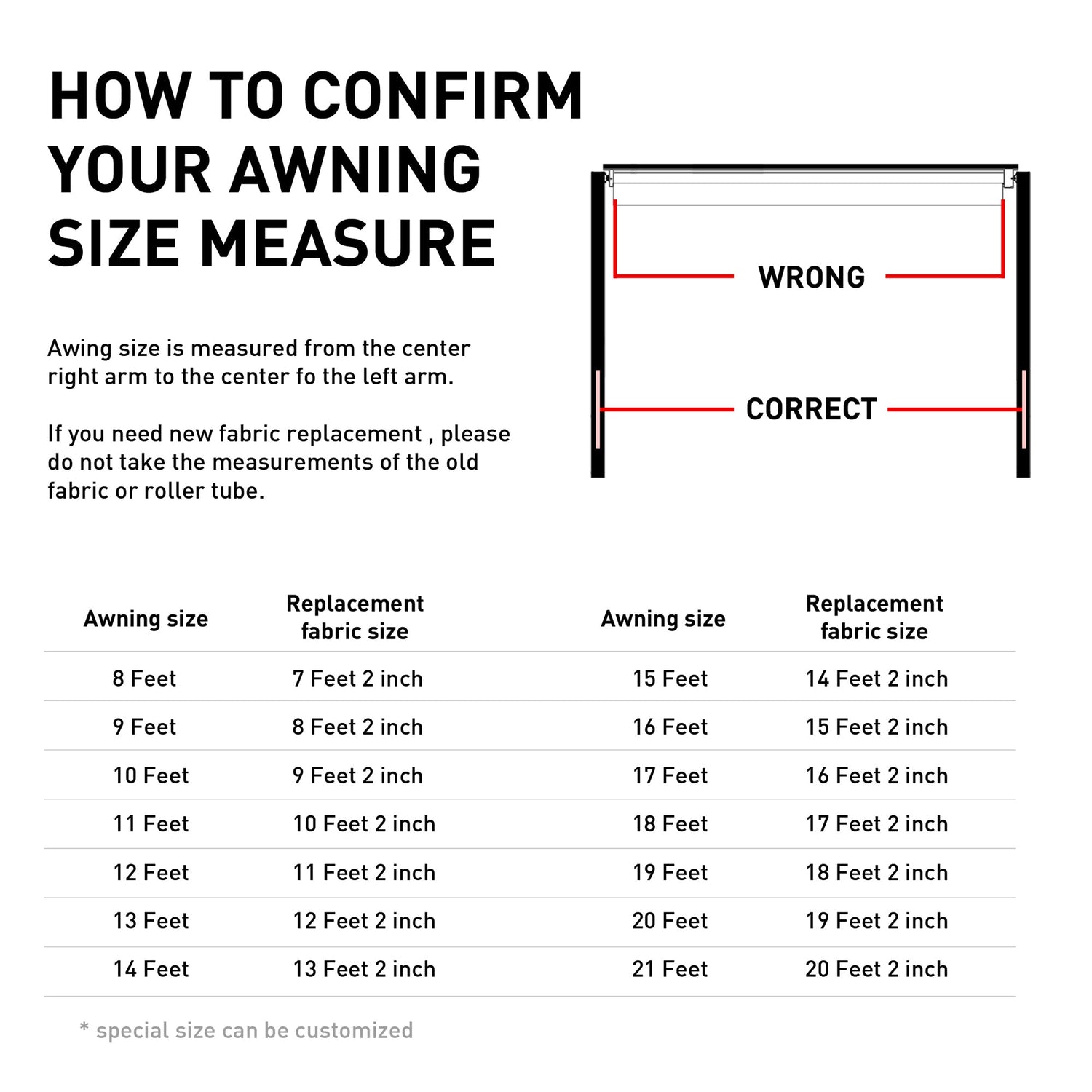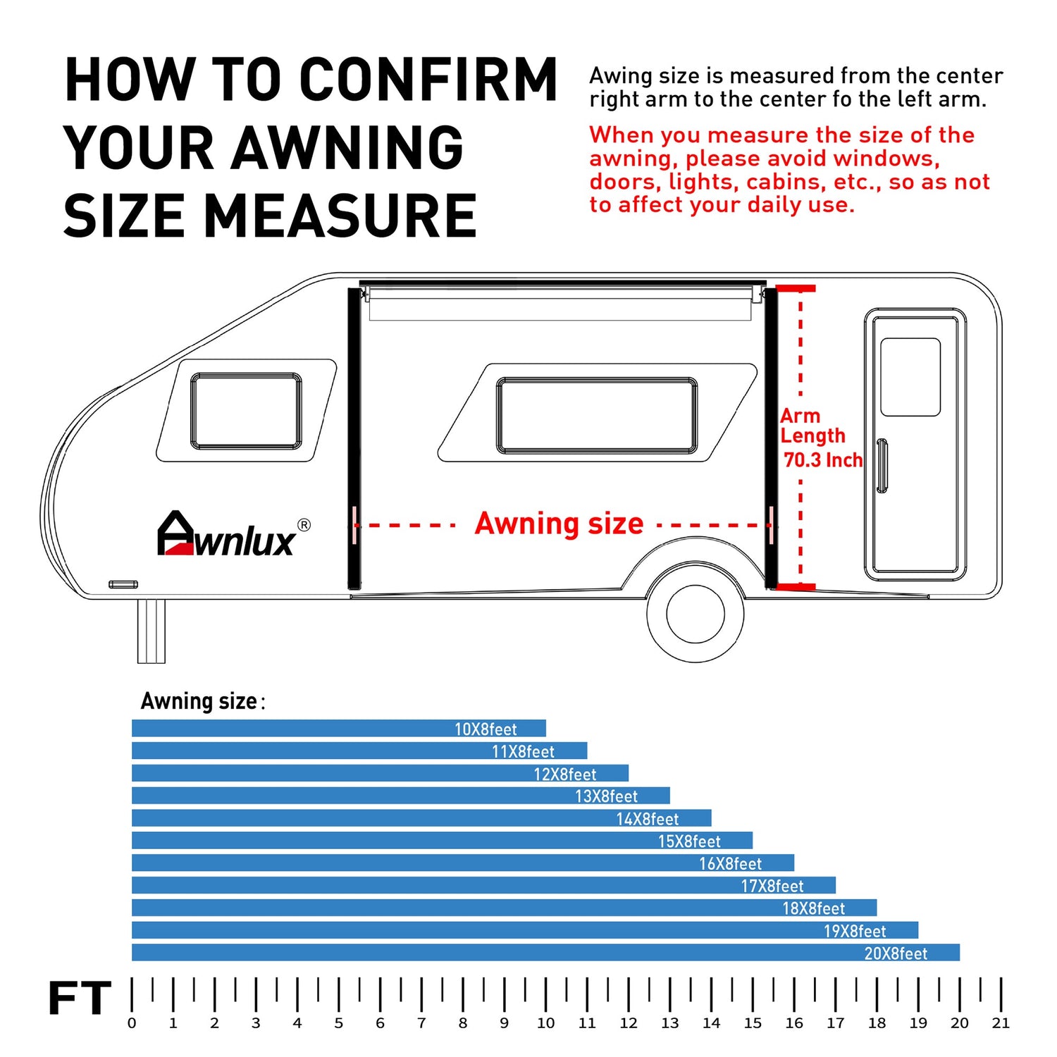 1. If there is an old awning on your RV, please measure the awning size from left arm center to right arm center.