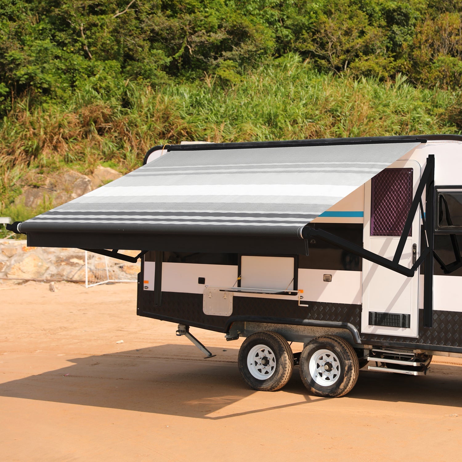 AWNLUX Electric RV Patio Awning - Black Frame - 8 Feet / Gray Fade is backordered and will ship as soon as it is back in stock.