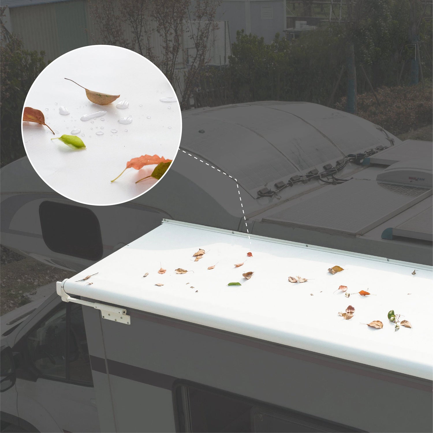 Wide sizes available (93"、140"、163"、171"、200"、230" ). Awnlux RV slide topper awning fabric replacement is engineered for excellent durability, offering superior resistance to UV rays (95%) and water (100%). Its super durable material ensures long-lasting performance, even under extreme weather conditions. Designed to withstand the harshest elements, it remains reliable and intact in temperatures as low as -45°C, making it the ideal choice for protecting your RV in all seasons.