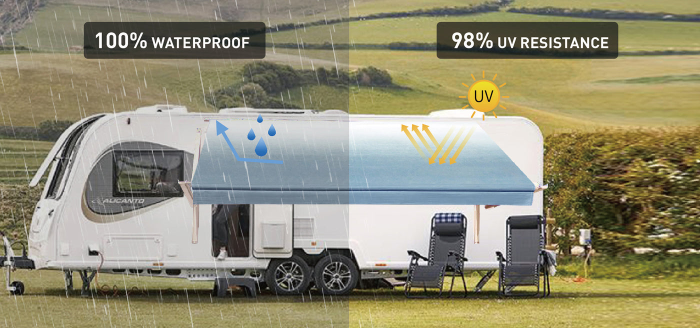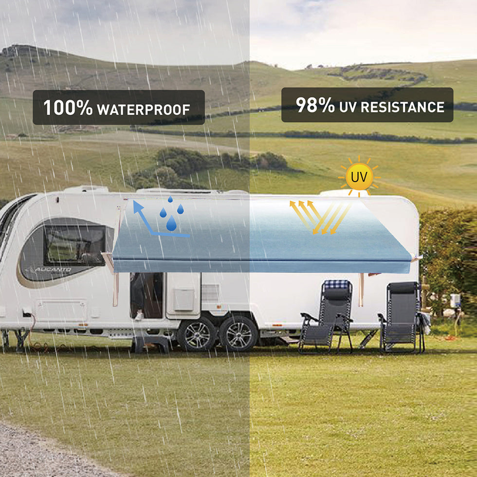 Suitable for RVs, Campers, 5th Wheel, Travel Trailers, Toy Haulers, Motorhomes, Caravan, Pop-up trailers, etc. Awnlux Power RV Awning is a complete set of products, including awning frame assemblies, fabric, and all necessary installation parts.