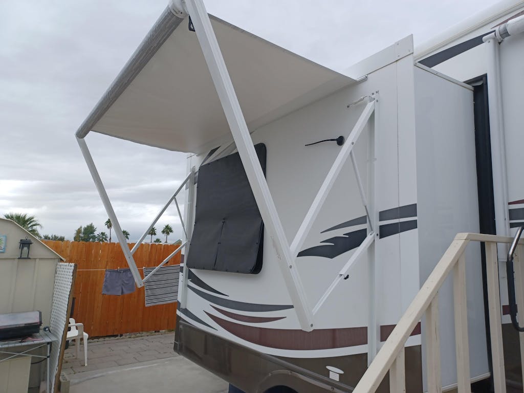 The Awnlux electric RV awning features a sail track with two grooves: one for the awning fabric and the other for an LED strip (LED strip must be purchased separately). Unlike other RV awnings, there’s no need to worry about stickers on your RV or additional wiring from the awning roller tube, making fabric replacement simple and hassle-free.
